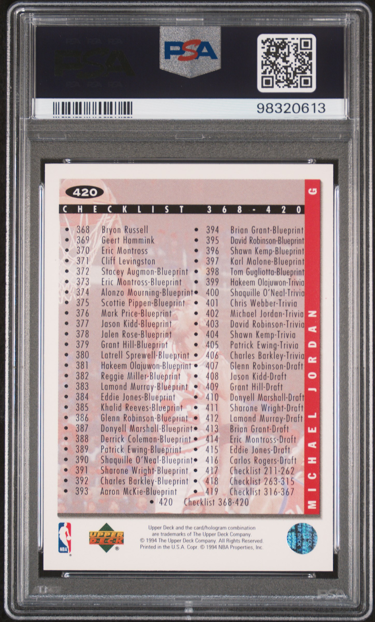 1994 Collector’s Choice Checklist Gold Signature Michael Jordan #420 PSA 10 Gem Mint