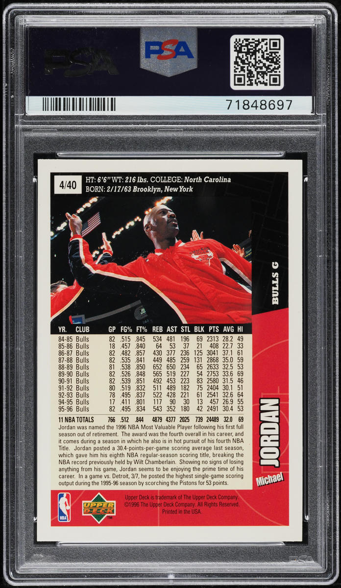 1996-97 COLLECTOR’S CHOICE SLAM DUNK SERIES MICHAEL JORDAN SLAM DUNK SERIES #4 PSA 10 GEM MINT