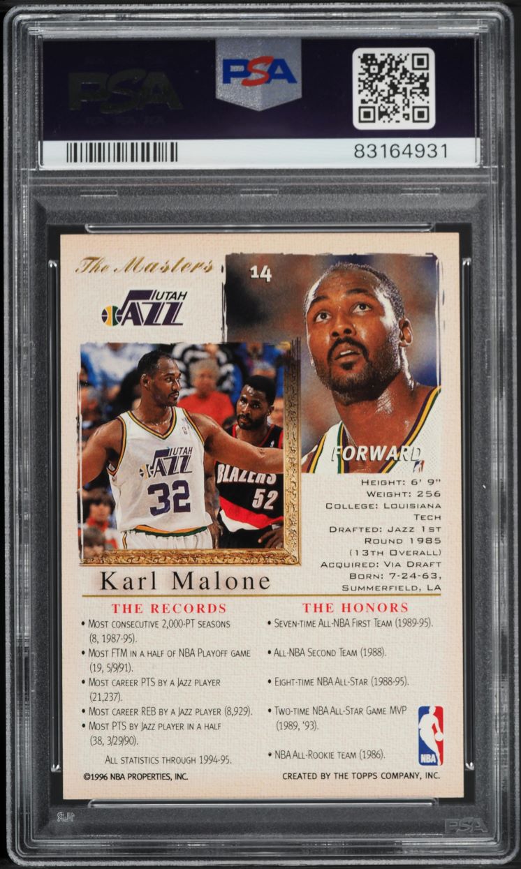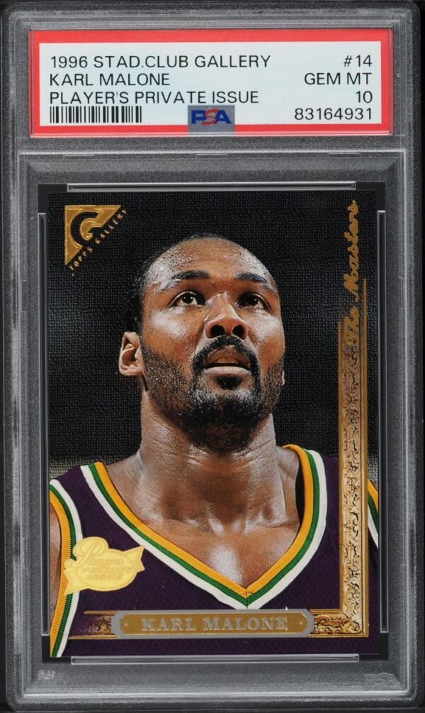 1996 STADIUM CLUB GALLERY PLAYER’S PRIVATE ISSUE KARL MALONE #14 PSA 10 GEM MINT