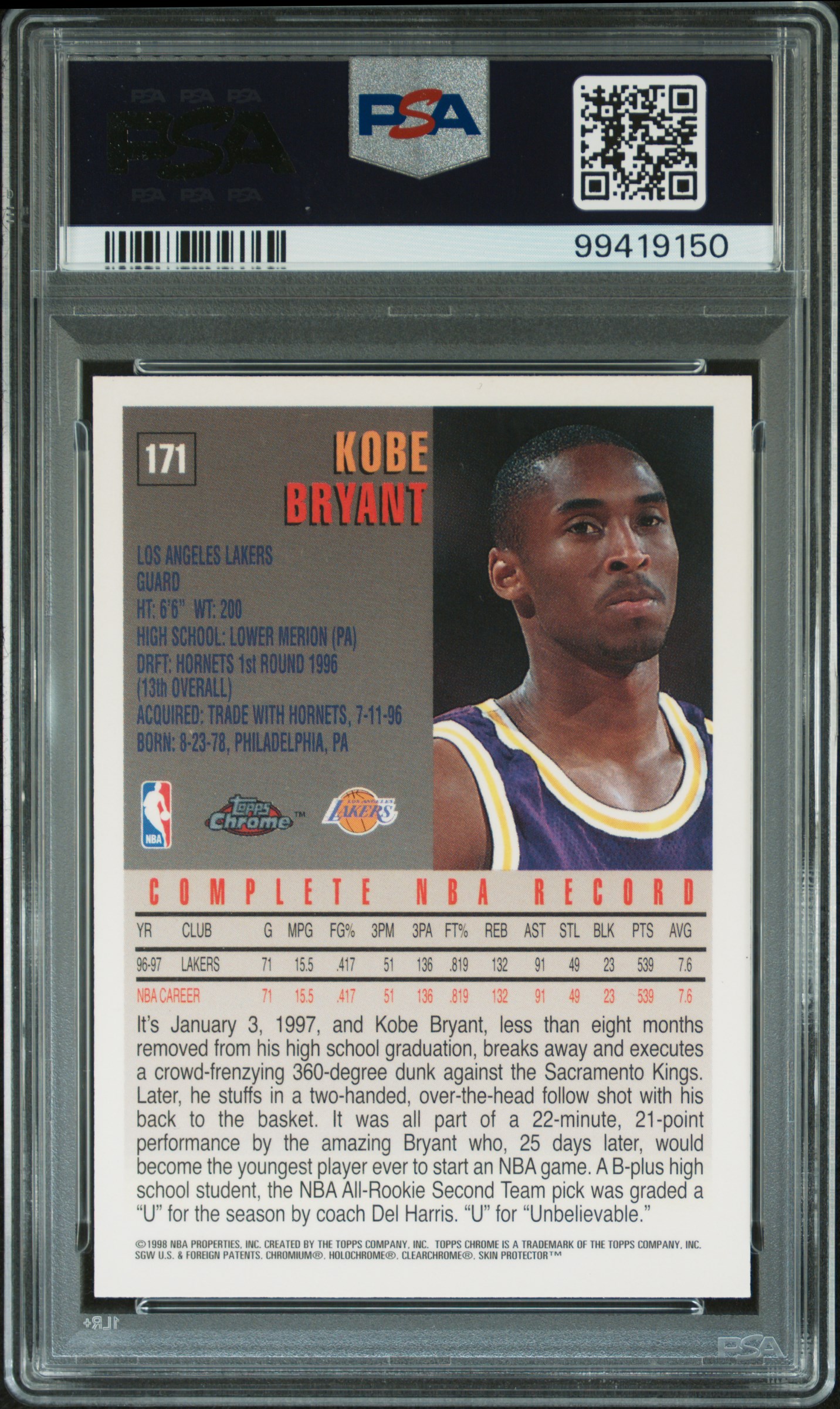 1997 Topps Chrome Kobe Bryant #171 PSA 9 Mint