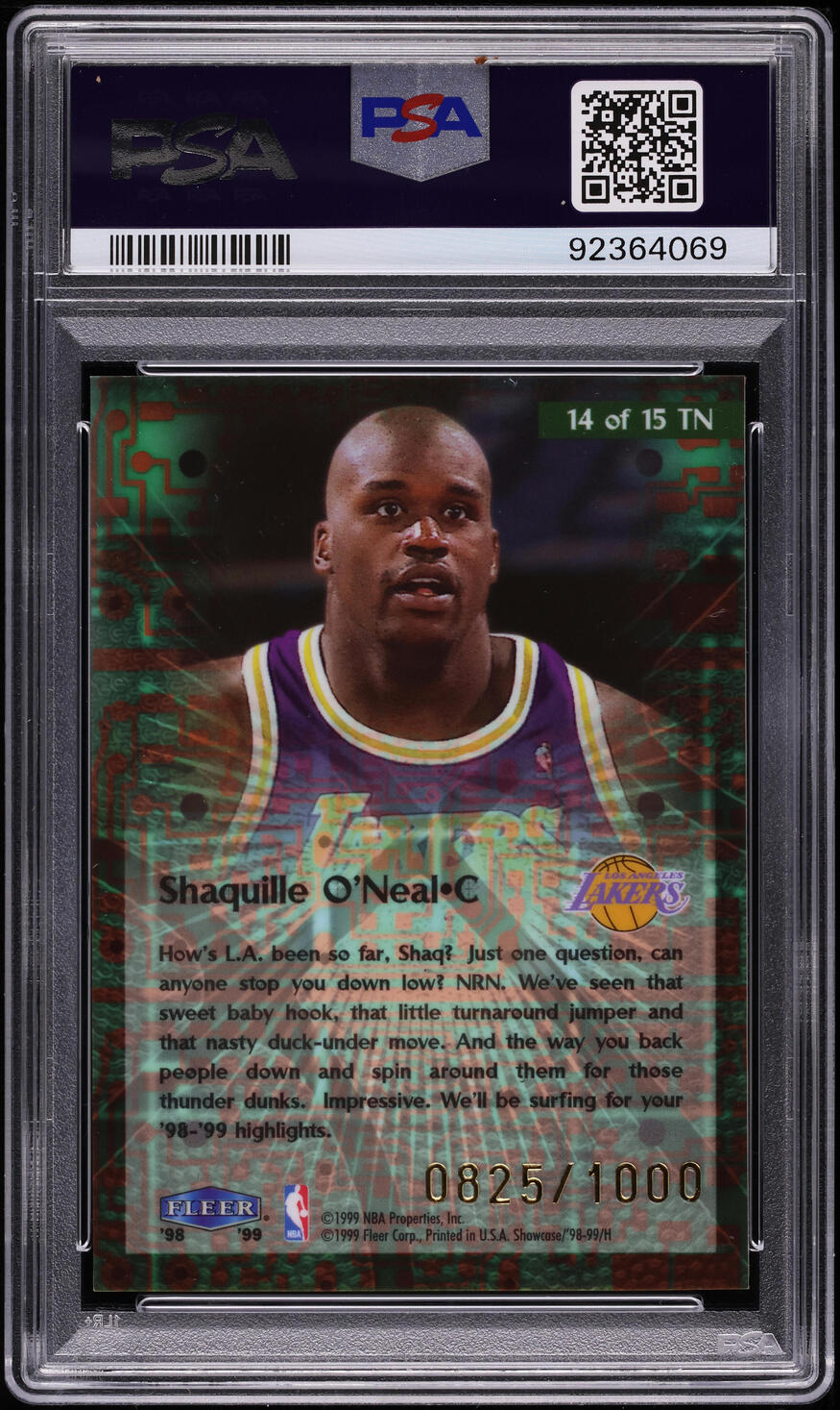 1998-99 Flair Showcase Takeit2.Net Shaquille O’Neal /1000 #14 PSA 10 GEM MINT