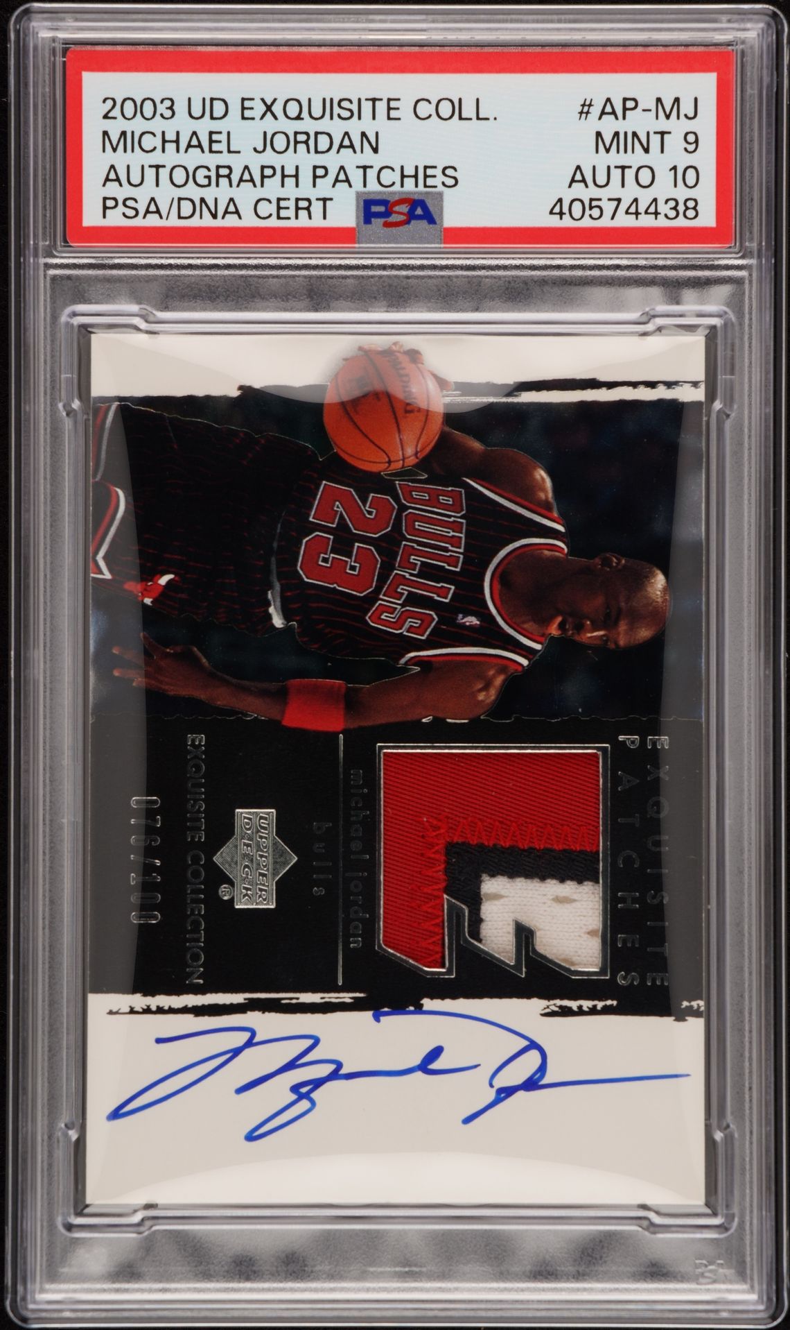 2003 Exquisite Collection Autograph Patches Michael Jordan /100 #AP-MJ PSA 9 Auto 10