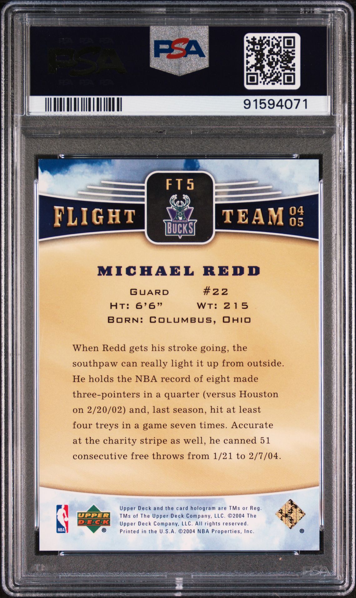 2004-05 UPPER DECK FLIGHT TEAM RAINBOW MICHAEL REDD #FT5 PSA 9 MINT