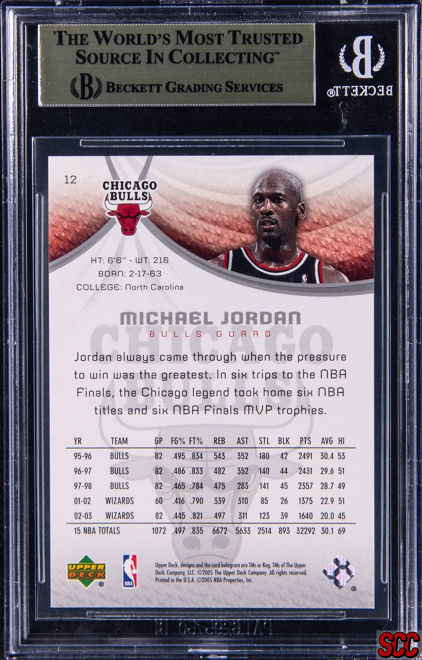 2005 SP Game Used Silver Spectrum Michael Jordan #12 /10 BGS 9.5 Gem Mint