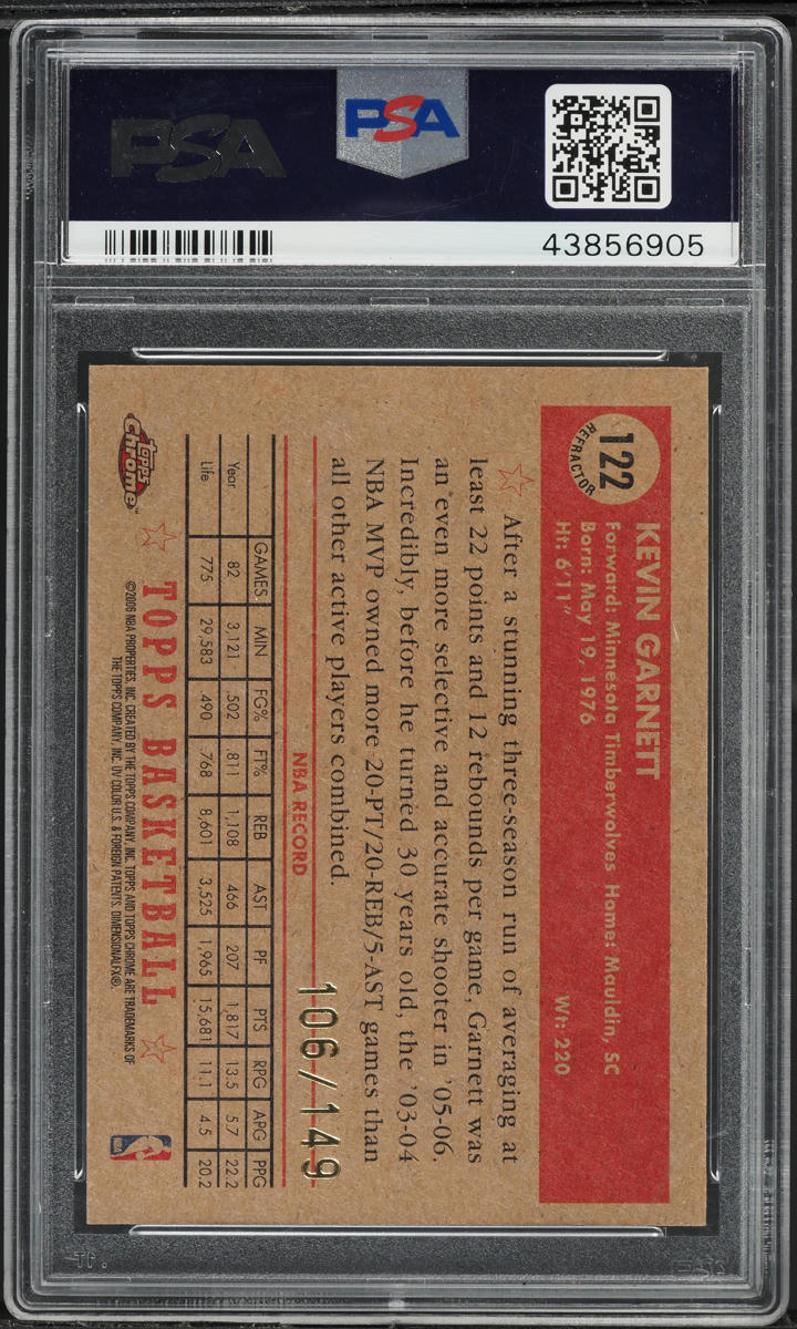 2005 Topps Style ’52 Chrome Blue Refractor Kevin Garnett /149 #122 PSA 10 GEM