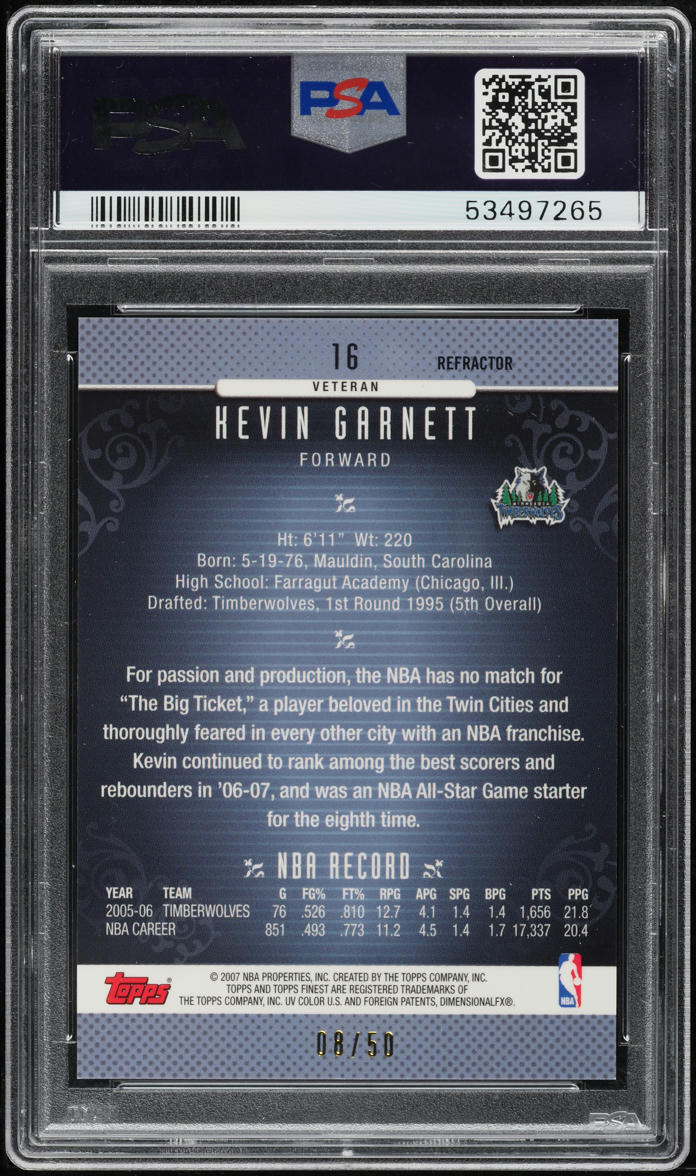 2006-07 FINEST GOLD REFRACTOR KEVIN GARNETT #16 PSA 10 GEM MINT