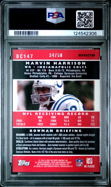 2007 Bowman Chrome Gold Refractor Marvin Harrison #BC147 /50 PSA 10 Gem Mint