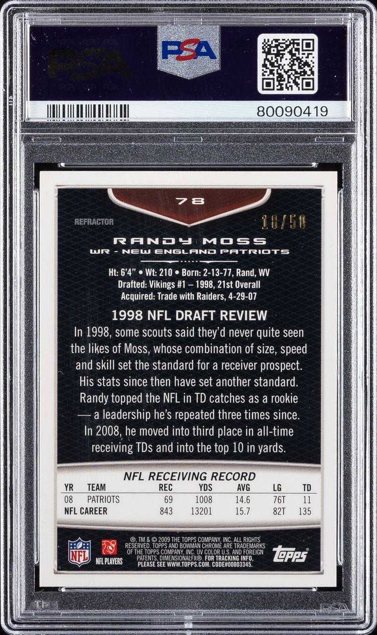2009 Bowman Chrome Gold Refractor Randy Moss #78 /50 PSA 10 Gem Mint