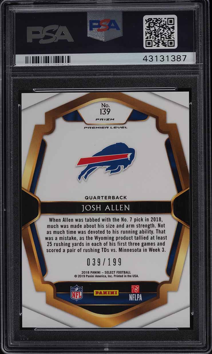 2018 Select Premier Level Tri-Color Prizm Josh Allen ROOKIE /199 #139 PSA 10 GEM