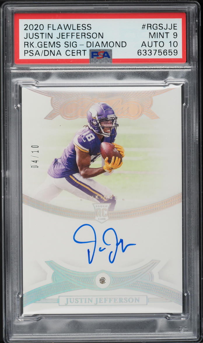 2020 Panini Flawless Diamond Gems Justin Jefferson ROOKIE AUTO DNA 10 /10 PSA 9