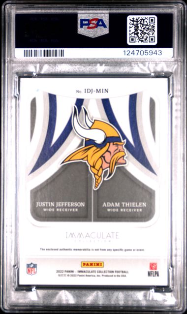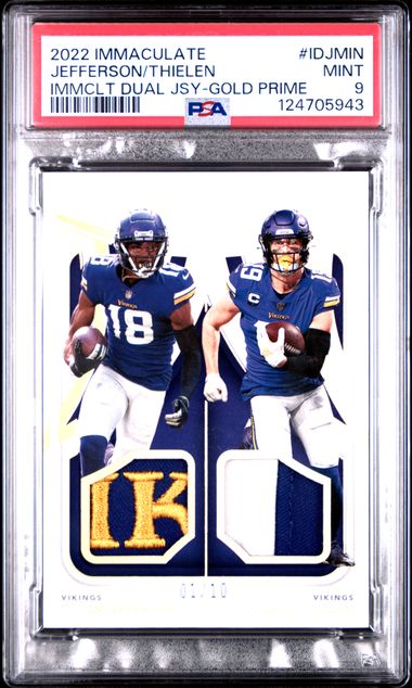 2022 Panini Immaculate Collection Immaculate Dual Jerseys Gold Prime Justin Jefferson/Adam Thielen /10 #IDJMIN PSA 9 Mint